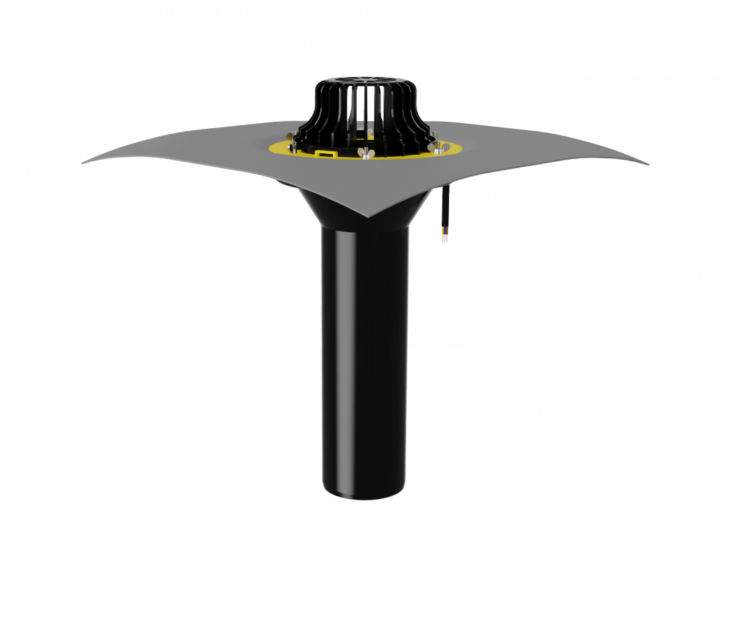 Благодаря коррозионностойкому металлическому прижимному фланцу, с зоной прижатия шириной 45 мм, выдерживает большие нагрузки. Механический способ соединения кровельного полотна с воронкой применим для всех типов гидроизоляционных материалов.