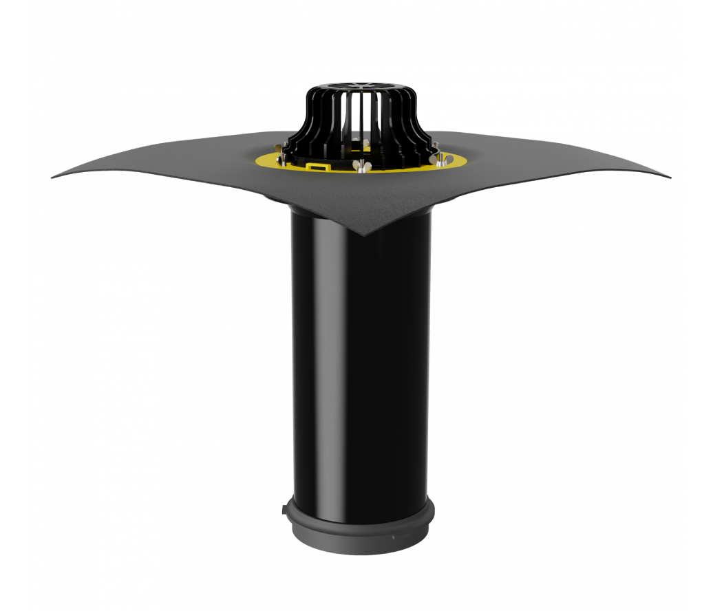 Применяется на плоских утепленных кровлях для герметичного прохода водостока через паро- и теплоизоляцию.