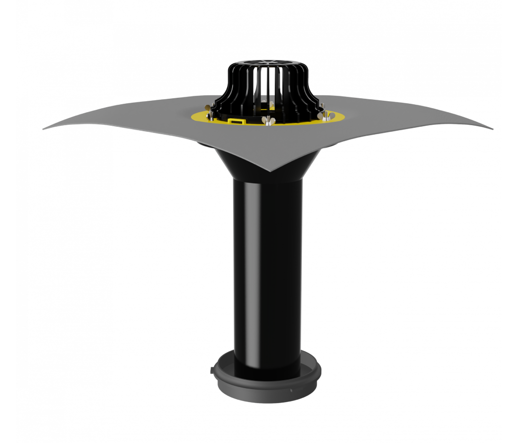 Применяется на плоских утепленных кровлях для герметичного прохода водостока через паро- и теплоизоляцию.