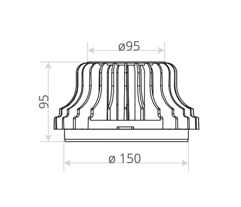 При повороте на 180° служит дренажным кольцом для надставных элементов с диаметром выхода ø110 , ø160.