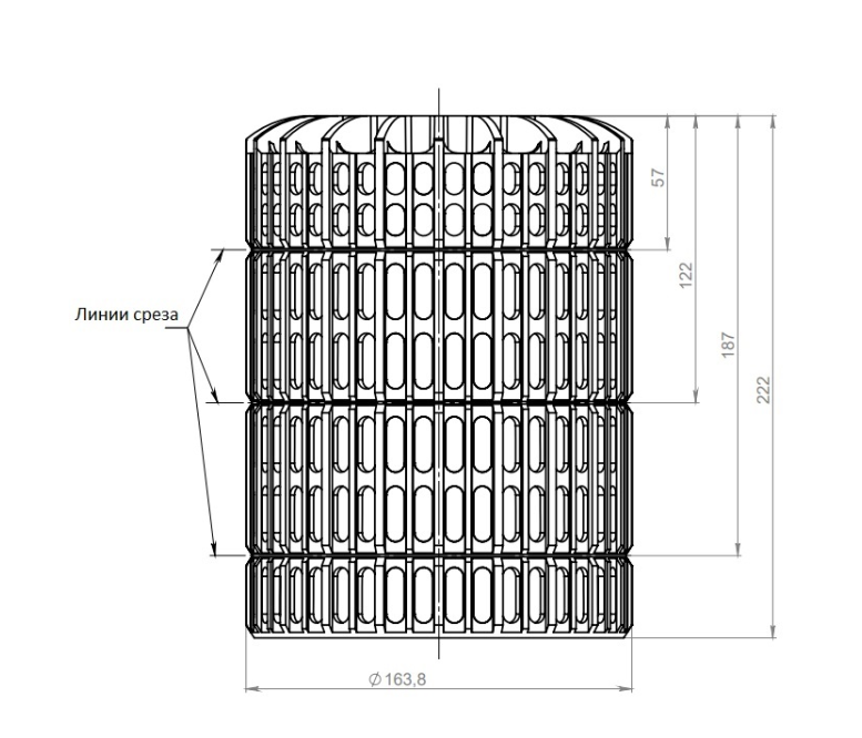 Можно изменять высоту листвоуловителя путем подрезки его нижней части по специальным кольцевым канавкам.