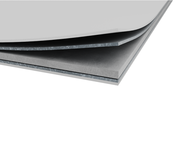Двусторонний лист, оцинкованный горячим способом на лицевой стороне покрыт слоем ПВХ плёнки, которая стабилизирована к климатическим условиям и ультрафиолетовому излучению. Оборотная сторона покрыта покровным лаком.