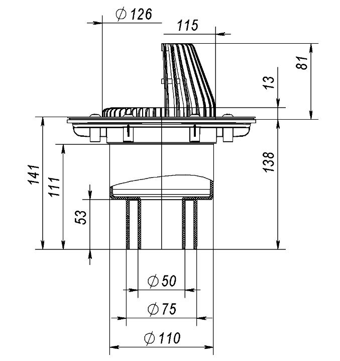 Кровельные воронки серии VB 310 с листвоуловителем, с диаметром выпускного патрубка 50/75/110 мм, предназначены для отвода дождевой и талой воды с плоских кровель, террас, балконов во внутренний водосток ливневой канализации.