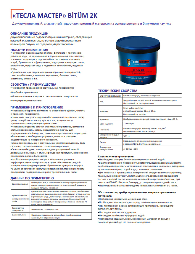 ТЕСЛА МАСТЕР BİTUM 2K двухкомпонентная гидроизоляция в Ташкенте