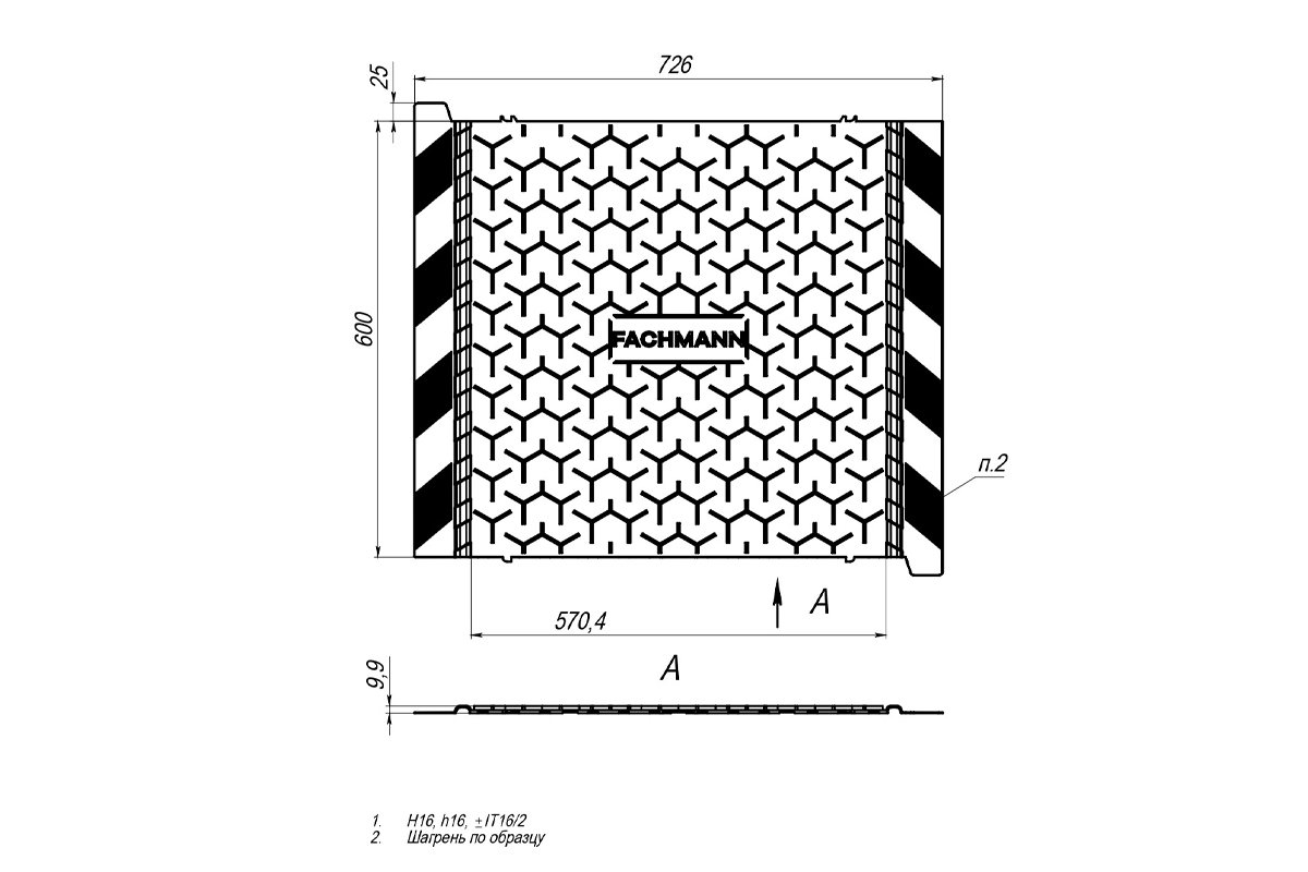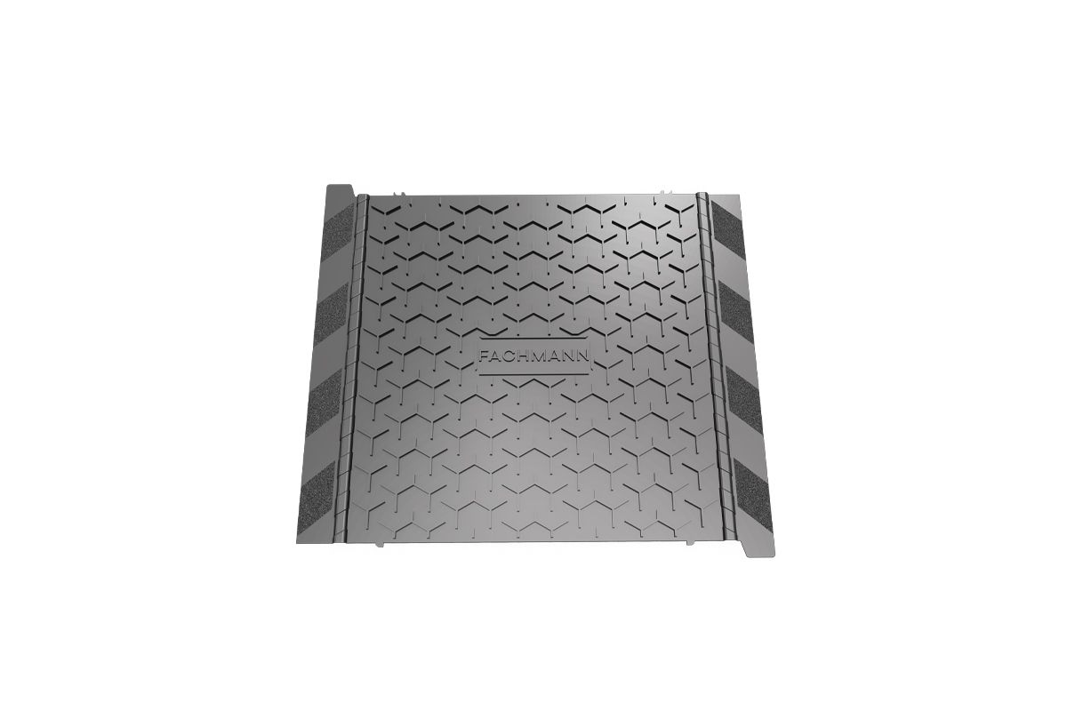 Дорожка кровельная FACHMANN Y-образная Описание Кровельная дорожка Fachmann светло-серого оттенка предназначена для создания пешеходных дорожек для рабочих на крыше. За счет высокого рельефа у дорожки антискользящее покрытие. Соединяясь между собой «шип-в-шип», элементы образуют единое полотно для безопасного передвижения. Кровельная пешеходная дорожка изготовлена из поливинилхлорида, устойчивого к погодным условиям. Благодаря этому износостойкая дорожка круглый год обеспечивает комфортный доступ к обслуживаемому оборудованию. Кровельная дорожка ПВХ соединяется с поверхностью крыши с помощью горячего воздуха. На обратной стороне элемента предусмотрены канавки для отвода воды, поэтому делать разрывы в дорожке не требуется. Характеристики Материал ПВХ Размеры, мм 726х600