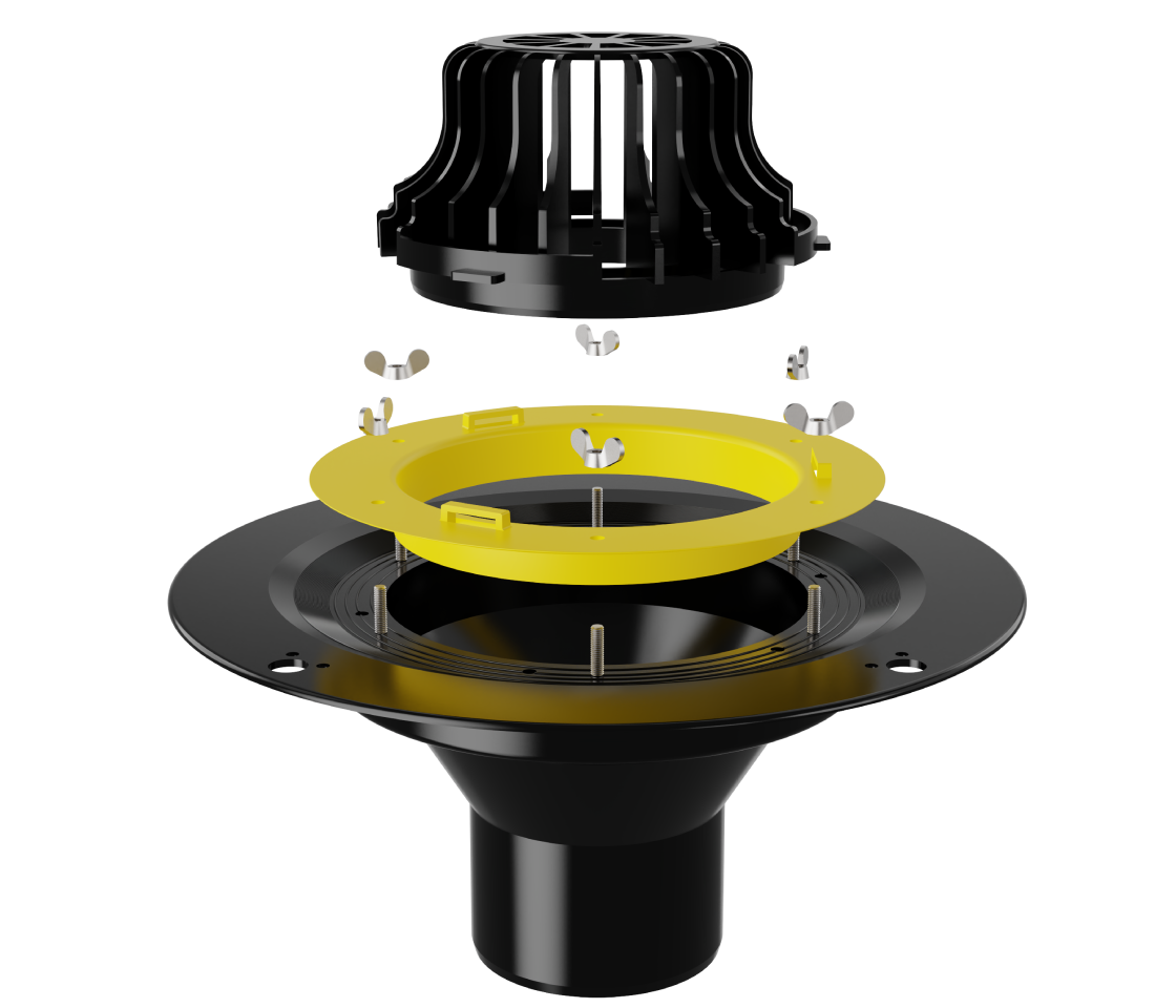 Воронка изготовлена из высокопрочного полимера, устойчивого к ультрафиолетовому и атмосферному воздействию в диапазоне температур -50 до +90°С. Материал воронок обладает коэффициентом теплового расширения, близким по величине к линейному расширению гидроизоляционных материалов.