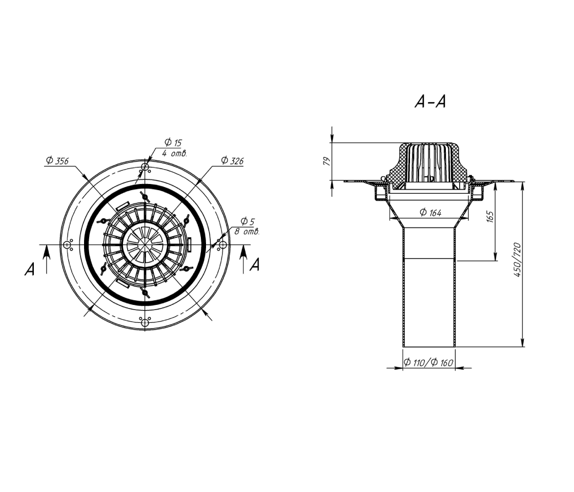 Кровельная воронка с листвоуловителем и металлическим обжимным фланцем с вертикальным выпуском используется при устройстве водоотвода c кровли.