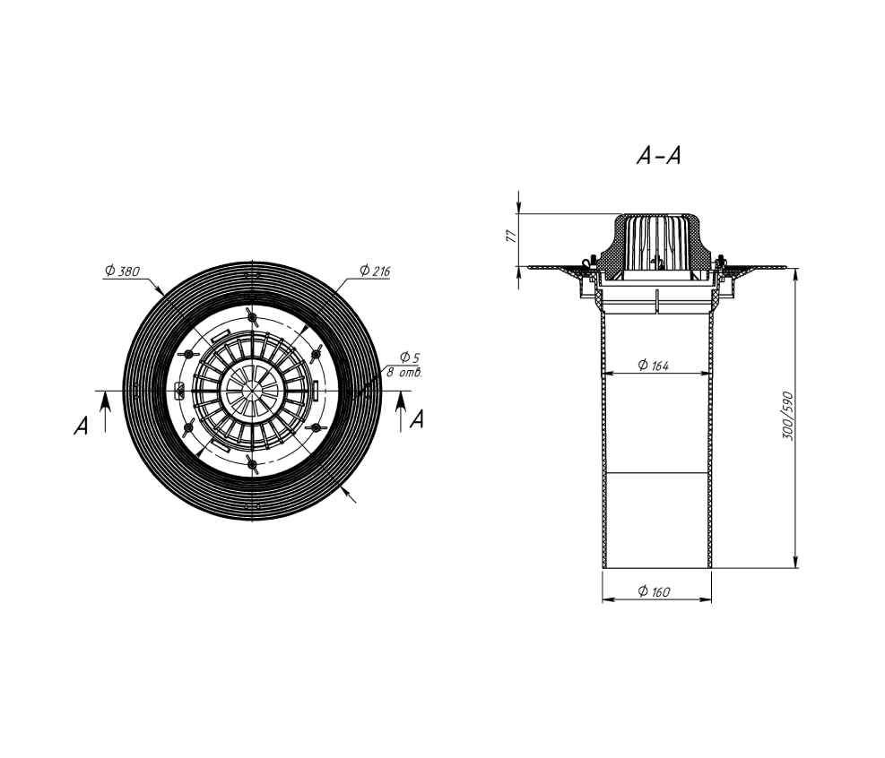 Также, в корпусе воронки присутствуют ребра, предотвращающие вихреобразования жидкости во время слива, благодаря чему обеспечивается постоянный и непрерывный поток жидкости без потери пропускной способности.