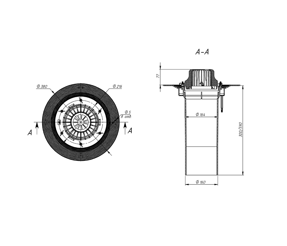 Воронка битумная обогреваемая с закладным элементом VMOPro 160x590