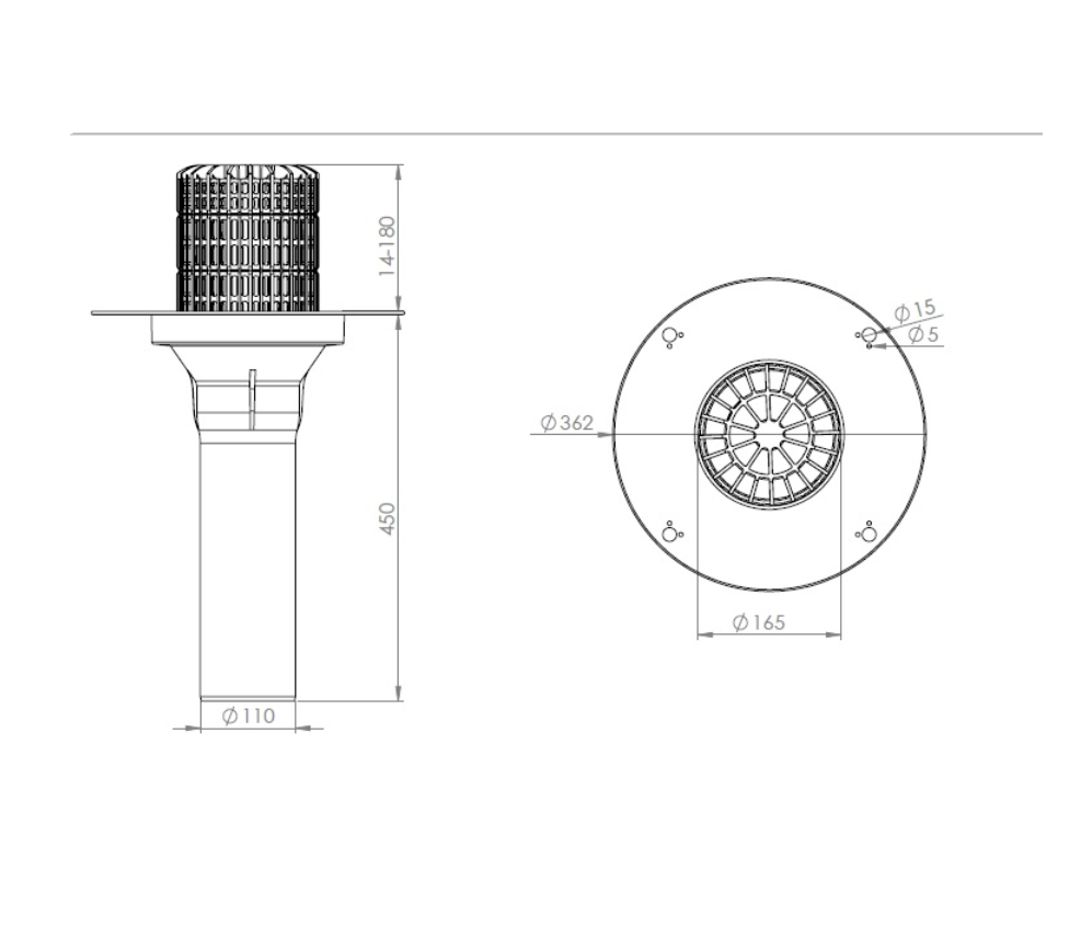 Корпус воронки из поливинилхлорида позволяет ускорить ее монтаж на кровле за счет приваривания к ПВХ-мембране, обеспечивая тем самым прочное и герметичное соединение, а вертикальный патрубок из ПП допускает возможность сваривания с водосточной трубой через муфту.