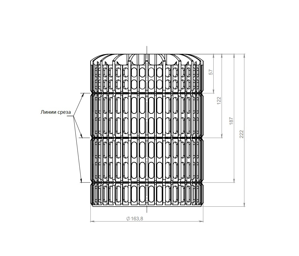 Можно изменять высоту листвоуловителя путем подрезки его нижней части по специальным кольцевым канавкам.