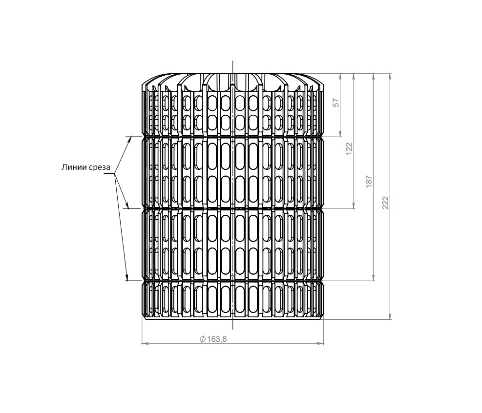 Можно изменять высоту листвоуловителя путем подрезки его нижней части по специальным кольцевым канавкам.