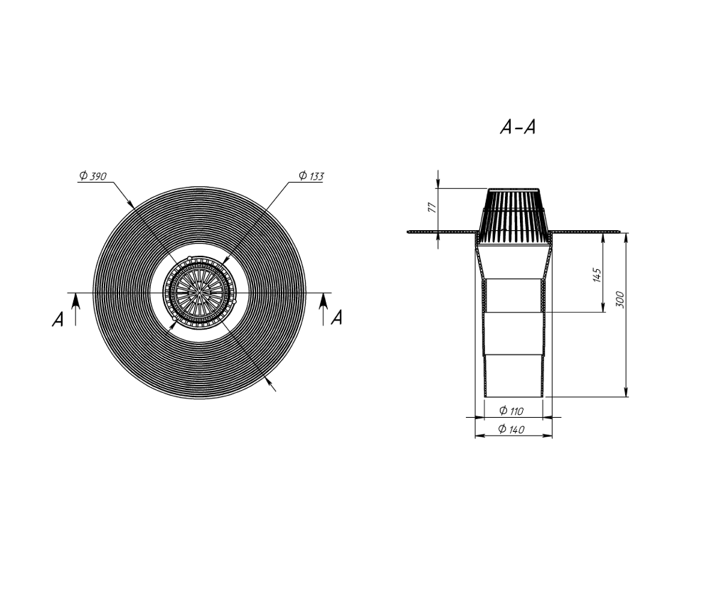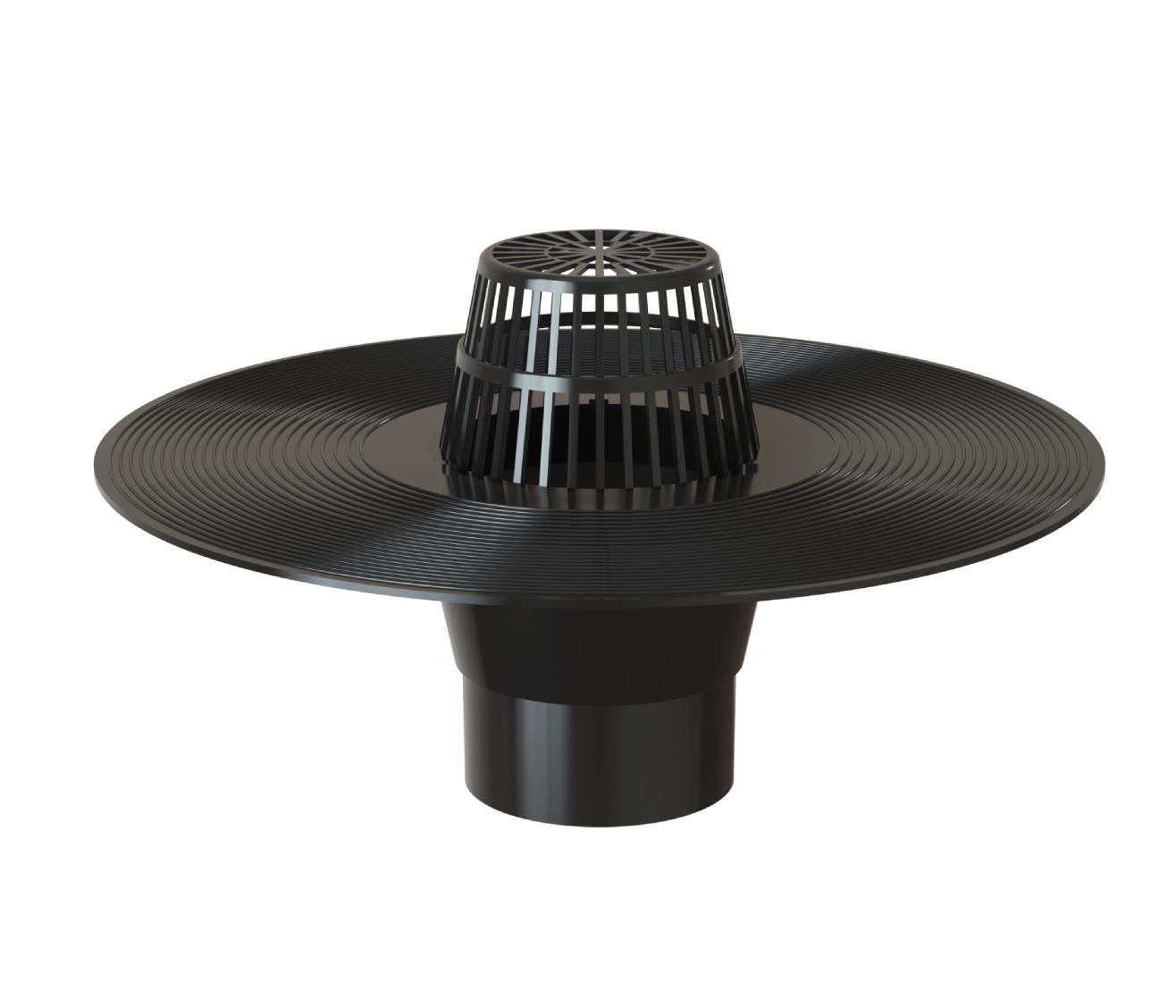 Кровельная воронка (эконом) V 110x140 обеспечивает беспрепятственное удаление влаги с поверхности кровельного ковра, предотвращая застой воды на гидроизоляционном покрытии.