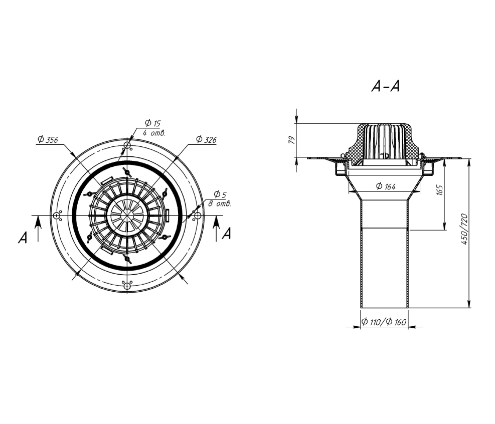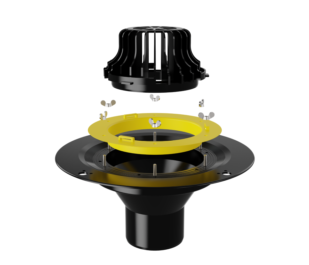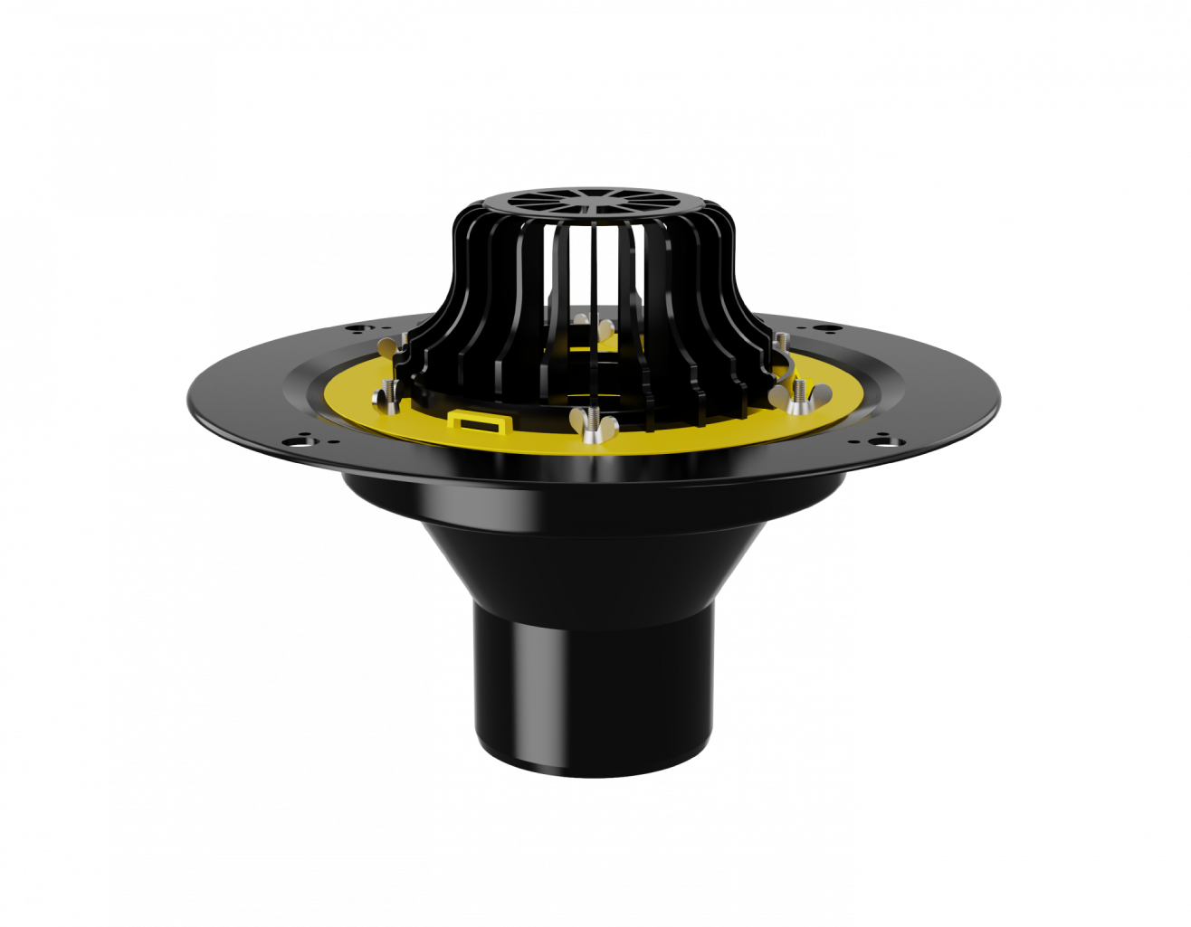 Благодаря коррозионностойкому металлическому прижимному фланцу, с зоной прижатия шириной 45 мм, выдерживает большие нагрузки. Механический способ соединения кровельного полотна с воронкой применим для всех типов гидроизоляционных материалов.