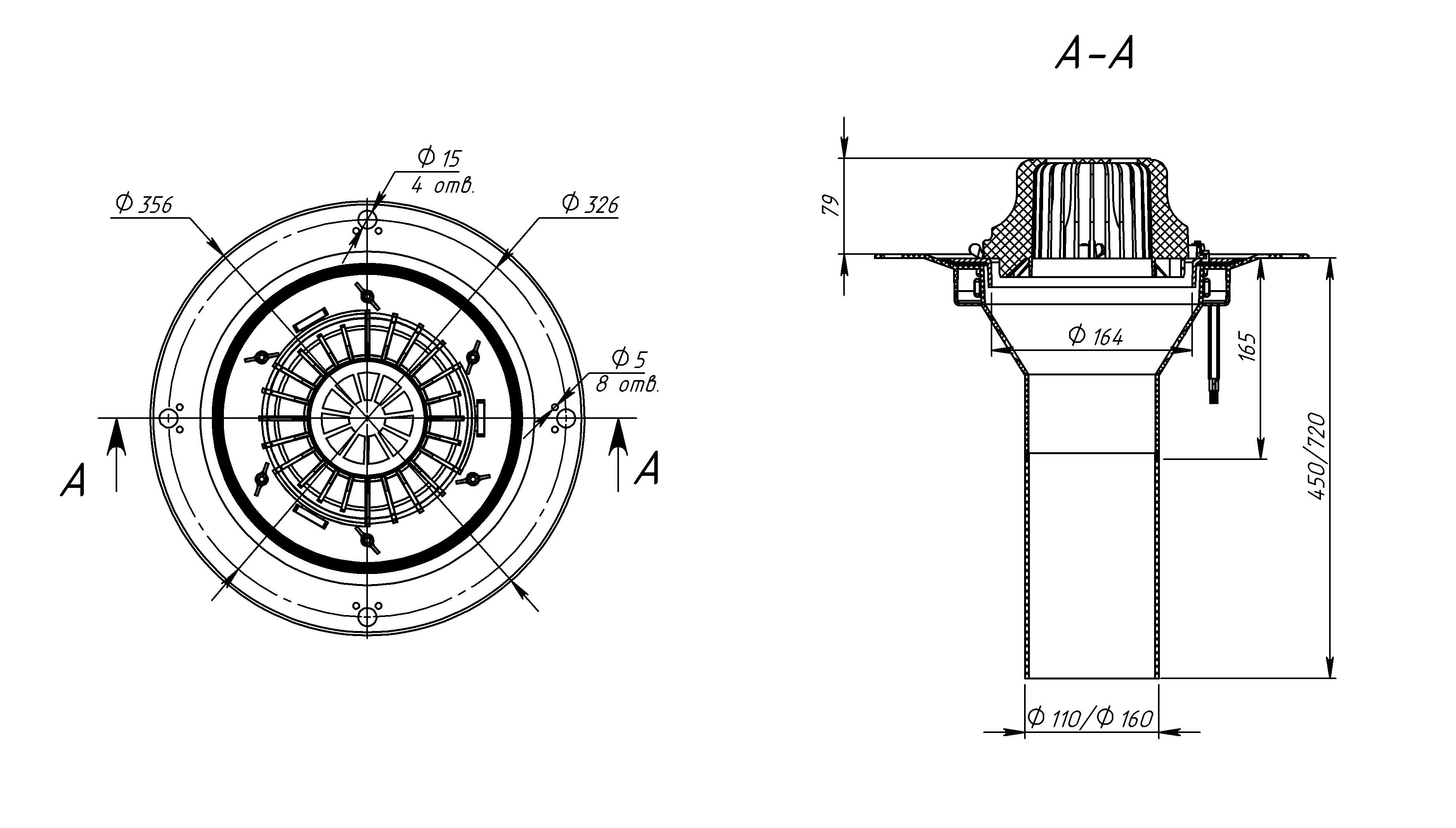 Благодаря коррозионностойкому металлическому прижимному фланцу с зоной прижатия шириной 45 мм, воронка выдерживает большие нагрузки, а механический способ соединения кровельного полотна применим для всех типов гидроизоляционных материалов.