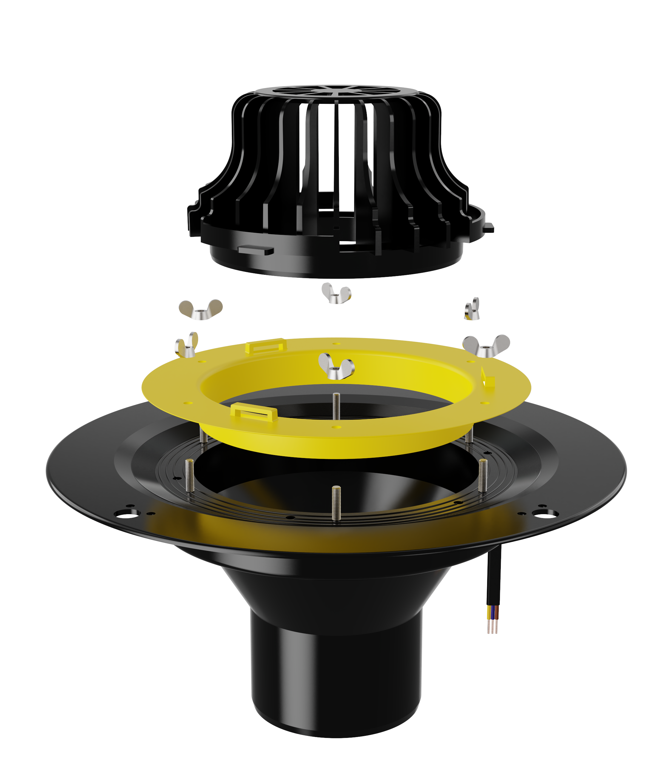Листвоуловитель, Фланец металлический, Комплект крепежа, Основание воронки, Нагревательный элемент