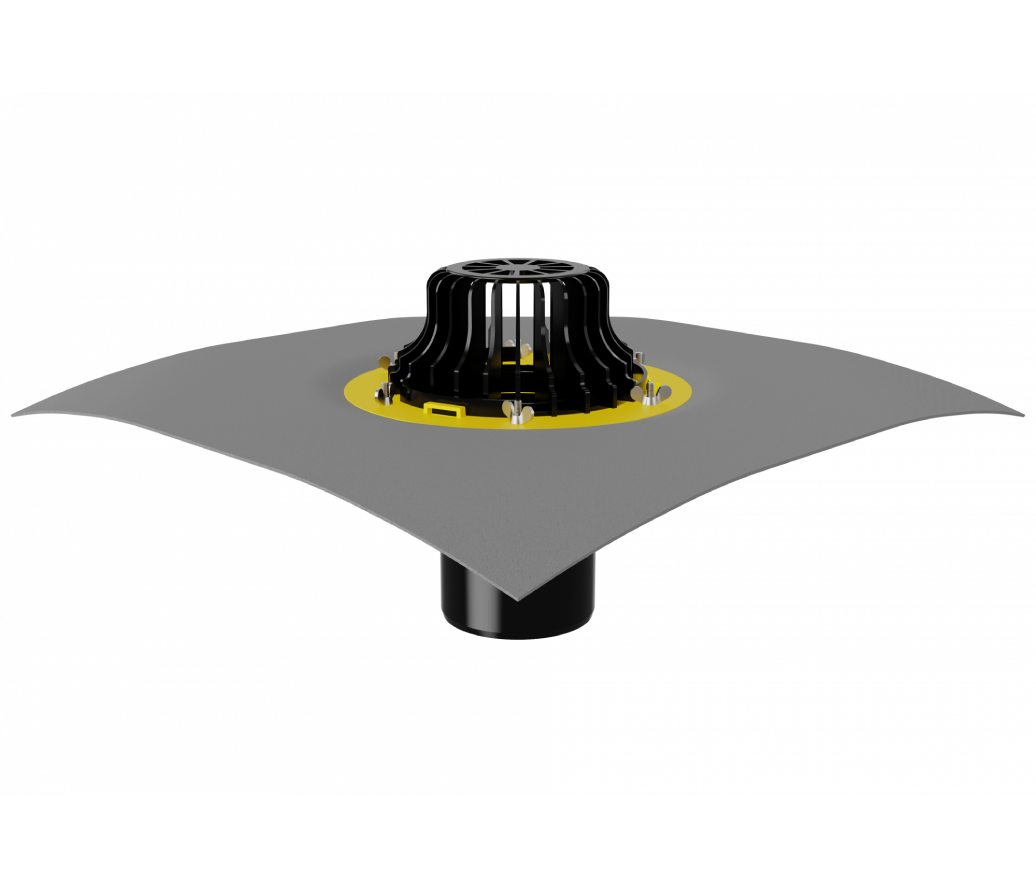 Благодаря коррозионностойкому металлическому прижимному фланцу, с зоной прижатия шириной 45 мм, выдерживает большие нагрузки. Механический способ соединения кровельного полотна с воронкой применим для всех типов гидроизоляционных материалов.