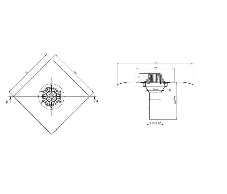 Комплектуется ПВХ фартуком и металлическим фланцем, которые обеспечивают надежное соединение с кровельным материалом, а также шестигранными гайками и барашками для удобства монтажа.