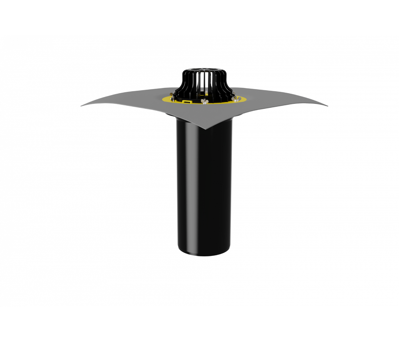 Кровельная воронка с листвоуловителем и металлическим обжимным фланцем с вертикальным выпуском используется при устройстве водоотвода с кровли. Благодаря коррозионностойкому металлическому прижимному фланцу, с зоной прижатия шириной 45 мм, выдерживает большие нагрузки. Механический способ соединения кровельного полотна с воронкой применим для всех типов гидроизоляционных материалов.