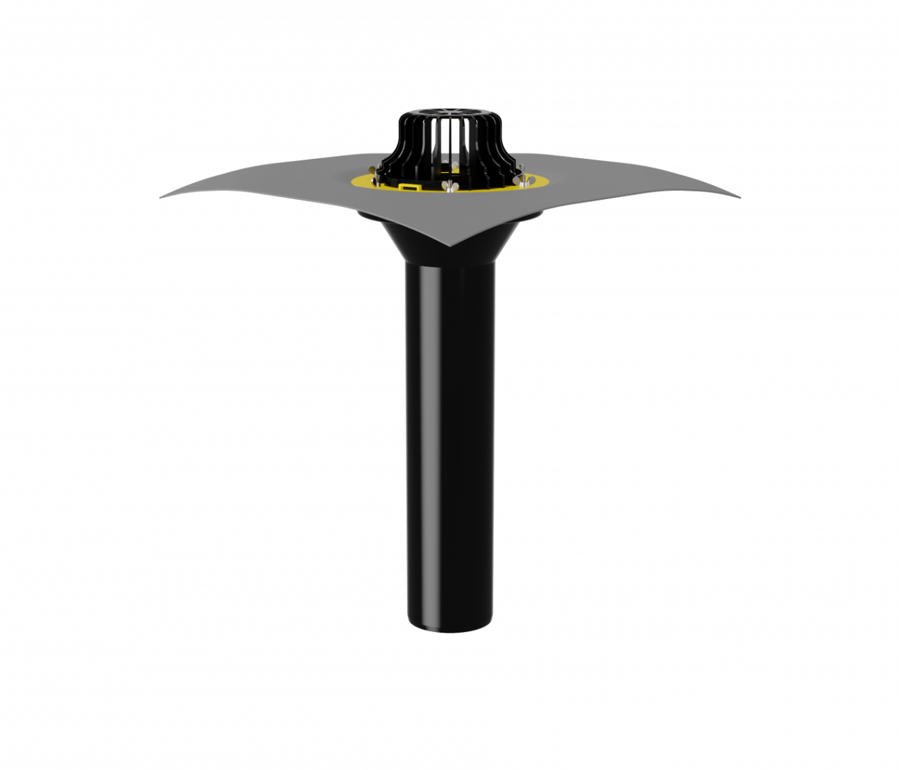Кровельная воронка с листвоуловителем и металлическим обжимным фланцем с вертикальным выпуском используется при устройстве водоотвода с кровли. Благодаря коррозионностойкому металлическому прижимному фланцу, с зоной прижатия шириной 45 мм, выдерживает большие нагрузки. Механический способ соединения кровельного полотна с воронкой применим для всех типов гидроизоляционных материалов.